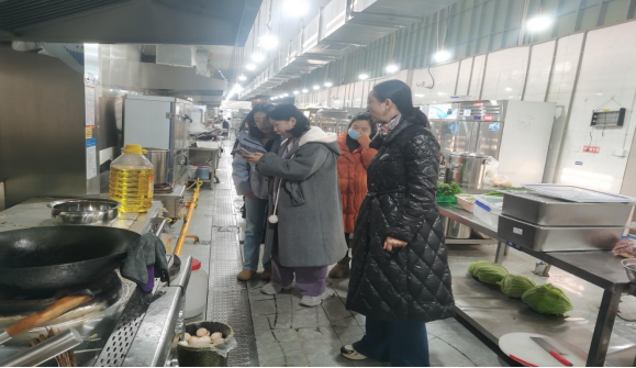 2025年12月17日上午,学校教职工代表在工会副主席杨婧的带领下,来到学校第一食堂和花园餐厅进行了巡视。